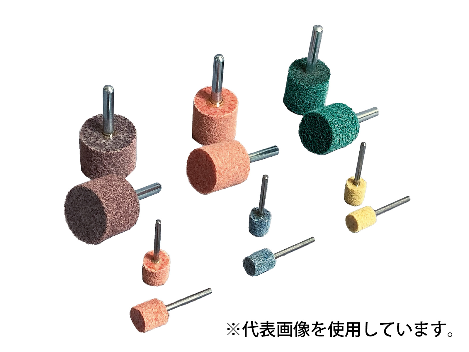 こちらの商品は、軸付き不織布ホイール ラミー 砥材A 粒度12(#320相当) 幅13mm 長さ13mm 寸法3mmです。